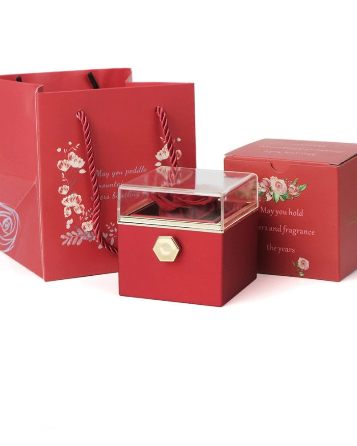 Thanks to its reversible design, it reveals a personalised necklace hidden beneath an eternal rose, transforming a simple gift into an unforgettable moment as soon as it is opened.